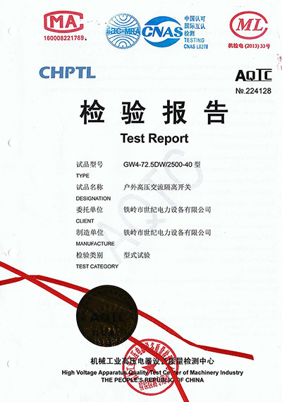 戶外高壓交流隔離開關檢驗報告